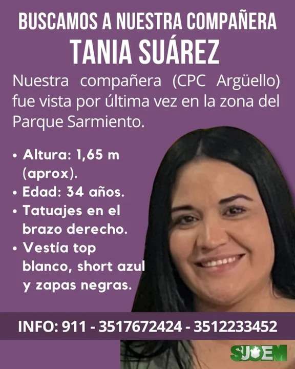 Tania Suárez fue vista por última vez el domingo 11 de enero cuando presuntamente fue a tomar mate al Parque Sarmiento, en la provincia de Córdoba