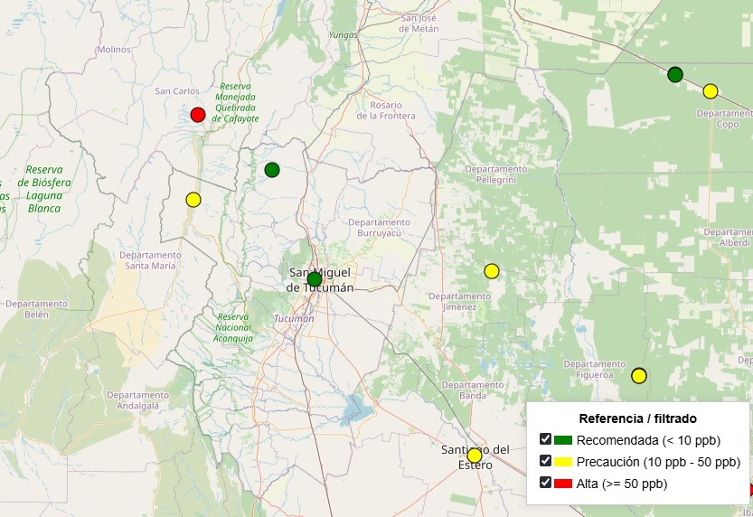 El presidente de la Sociedad Aguas del Tucumán (SAT), Marcelo Caponio, expuso el balance de las obras realizadas durante los últimos dos años y se refirió al informe difundido por medios nacionales sobre la presencia de arsénico en distintas regiones del país, al tiempo que expresó que los estudios realizados en Tucumán marcan a la provincia con indicadores en verde (con valores recomendados), salvo en la zona los Valles Calchaquíes que figura en amarillo (precaución).
