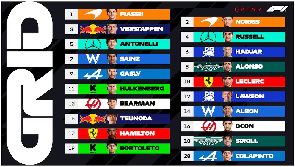 La carrera principal del Gran Premio de Qatar tendrá la pelea por el título desde la largada: Oscar Piastri se quedó con la pole position y comenzará justo por delante de Lando Norris (2°) y Max Verstappen (3°).
