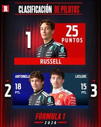 El podio lo completaron Andrea Kimi Antonelli, también con Mercedes, y Charles Leclerc con Ferrari. Lewis Hamilton terminó cuarto, en una carrera que dejó a Mercedes como gran referencia del arranque de temporada.