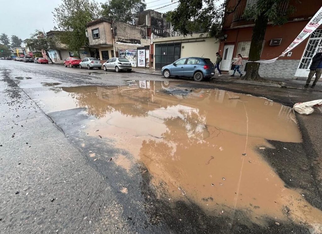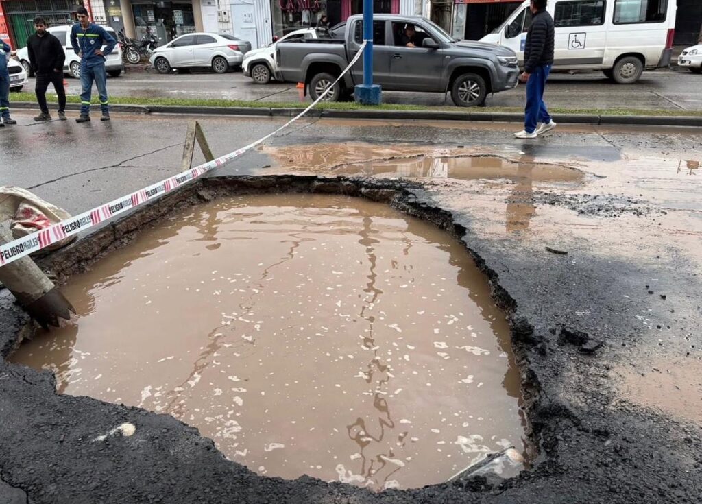 La SAT informó que están en marcha los trabajos para reparar la calzada hundida. Desde la empresa apuntaron contra el Municipio capitalino por los daños y pidieron a los vecinos y conductores circular con precaución en la zona.