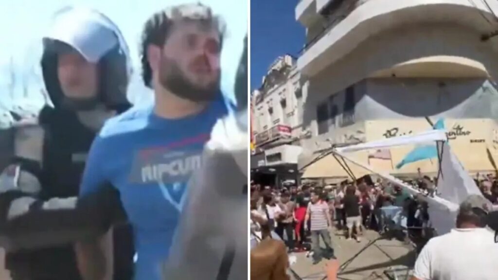En ese choque, los violentos desarmaron un gazebo que habían armado de LLA al grito de “Milei, basura, vos sos la dictadura”. Entre los grupos que repudiaban la presencia del Presidente había también banderas del PJ. De acuerdo a la información oficial, hubo al menos cuatro personas detenidas por los incidentes.