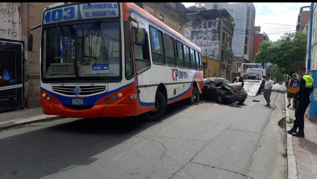 Un automóvil marca Chevrolet, y un colectivo del transporte público de pasajeros -Línea 103-, protagonizaron un choque en la calle Las Piedras al 300, según informó el periodista Horacio Flores en su cuenta de X.