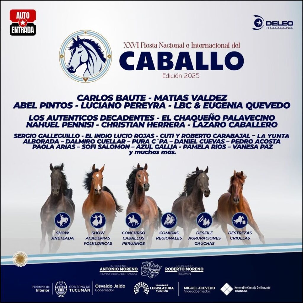 Este año, se celebra la XXVI entrega. Durante varias jornadas, el público podrá disfrutar de espectáculos musicales de primer nivel, destrezas gauchas, exhibiciones tradicionales, feria artesanal y gastronómica, además del imponente desfile que rinde homenaje a la noble figura del caballo, emblema de nuestra historia y nuestras raíces.