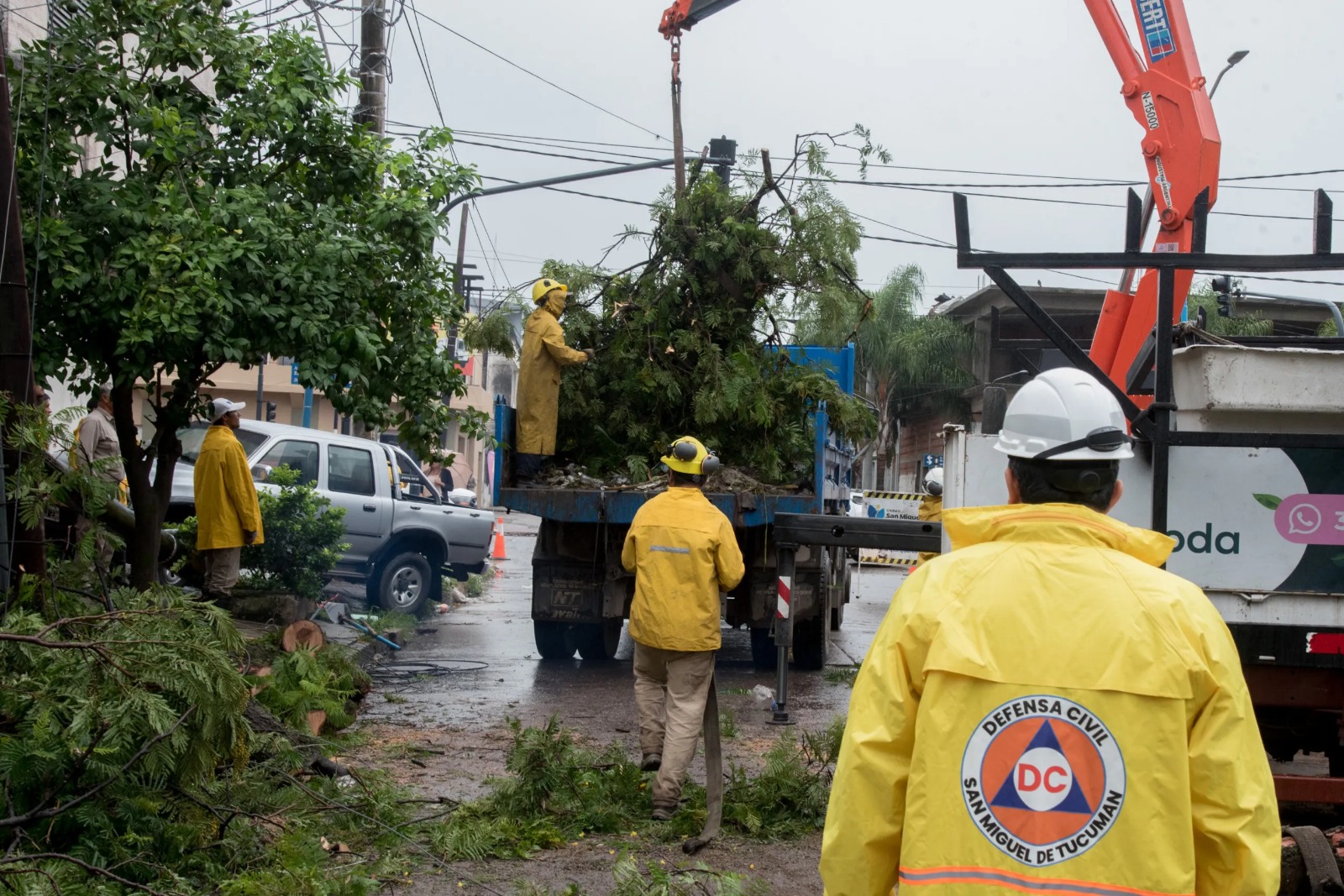 Las direcciones de Limpieza Urbana, Arbolado y Defensa Civil de la Municipalidad de San Miguel de Tucumán trabajan en tareas de limpieza y reparación en distintos puntos de la ciudad donde se registraron árboles caídos como consecuencia del fuerte temporal de lluvia y viento que se desató este martes por la noche en la capital.