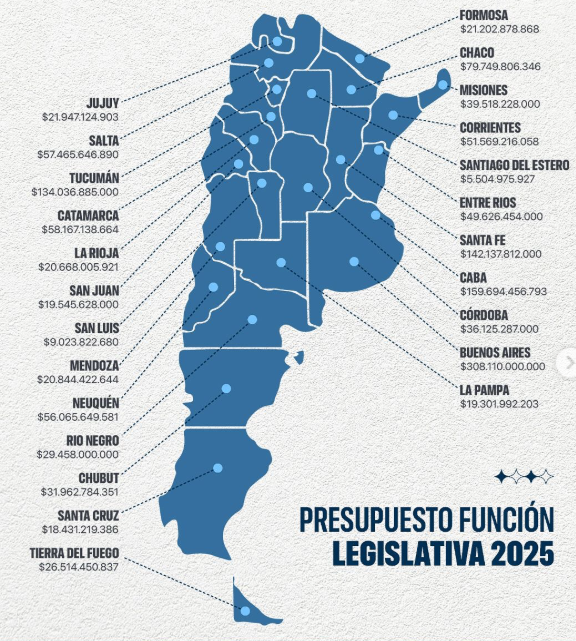 Además, comparte junto a CABA, Provincia de Buenos Aires y Santa Fe el mayor presupuesto por Legislatura en Argentina