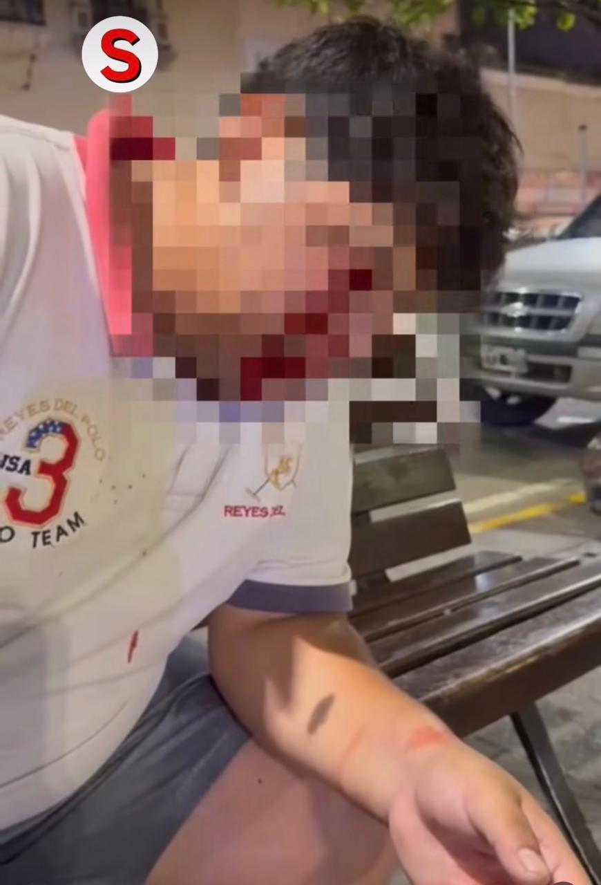 En tanto, el joven agredido permanece a la espera de una ambulancia para recibir atención médica.