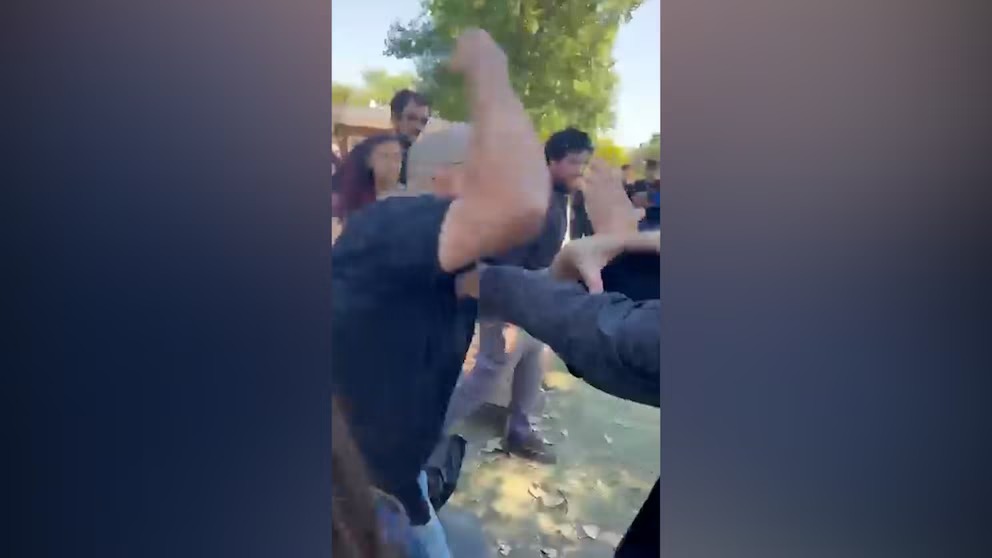 El agresor fue identificado como Juan Tumini. En las imágenes, se observa el momento del ataque por parte de Tumini a los integrantes de la organización universitaria.